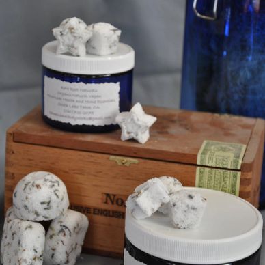 All of the ingredients I use are from companies that source their products from ethical producers who ensure the highest quality available. I feel that it is imperative that the companies I work with share the same principles. I do not incorporate any artificial fragrances or colors to my products. If my products are colored or scented, I have added my own distilled pure essential oils or organic plant materials. There are no artificial ingredients in any of my products nor are there any preservatives.