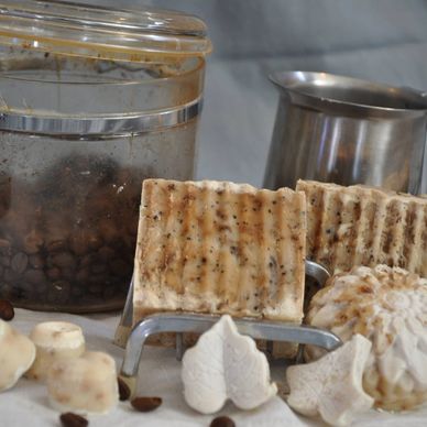Cafe Au Latte - Made with organic coffee, goat's milk, vanilla, and raw sugar. This invigorating bar exfoliates while awakening with it's wonderful scent.